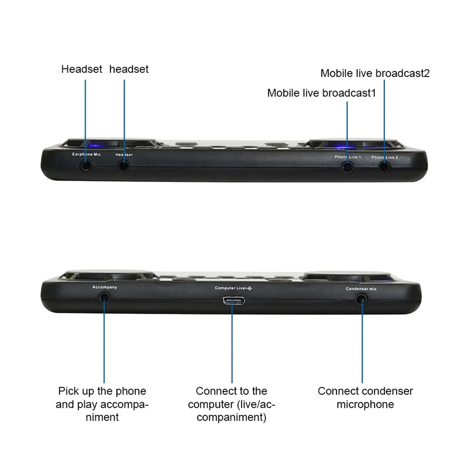 5. Large compatibilité avec téléphones portables et ordinateurs : Le changeur de voix Soundboard est compatible avec les PC, ordinateurs, tablettes, téléphones Android, appareils de type C, Windows et instruments de musique électroniques. Idéal pour la diffusion, le karaoké, l'enregistrement musical en studio, etc.